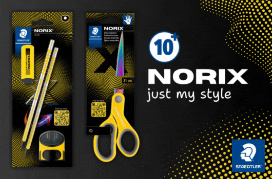 Kiskamaszkortól az iskolai eszközigények nagyban egyszerűsödnek, azonban egy új fontos szempont lép az előtérbe – a menő kinézet! A Noris termékcsalád nagytestvére a Norix kifejezetten a tinik számára jött létre: egyedi csapott formája ergonomikus tartást biztosít, míg barázdált felülete biztos fogást nyújt hosszabb rajzolás és írás esetén. Ami pedig a lényeg, fekete és élénk színekből kombinált megjelenése igazán trendi!