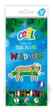 Színes ceruza készlet, háromszögletű, COOL BY VICTORIA "Wildlife", 12 különböző szín