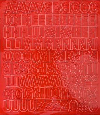 Öntapadós vinil tapétából hőpréssel stancolt betűlap.