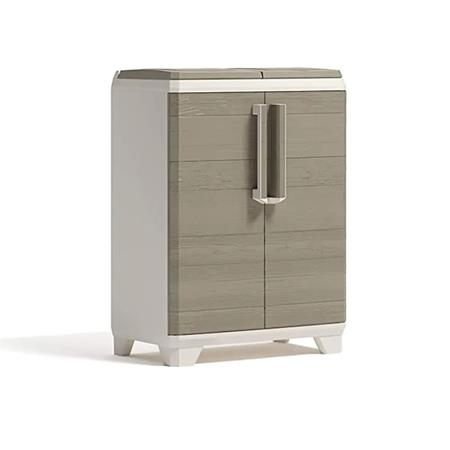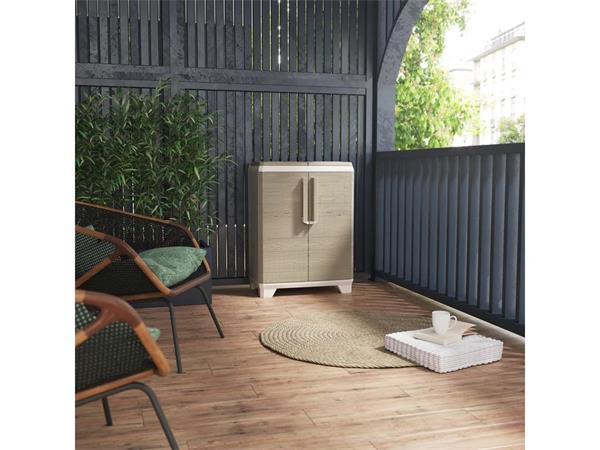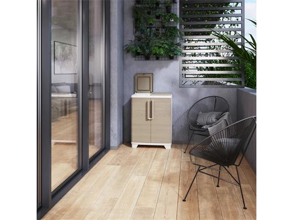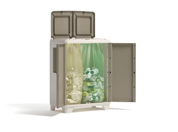 Szelektív hulladékgyűjtő szekrény, műanyag, KETER "Split Premium Wood", világos/bézs