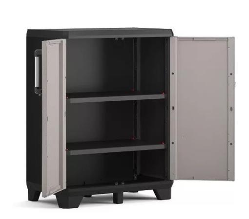 Szerszámtároló szekrény, alacsony, műanyag, KETER "Pro", fekete-szürke